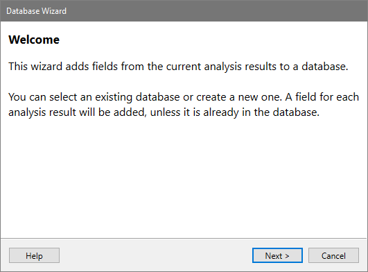 The wizard will add fields to the selected database for all of the analysis results that are shown on the report. If a field is already in the database, it will not be added again.
