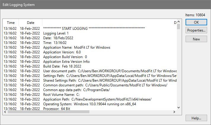 ModFit LT allows you to create a log of operations that you perform. This is useful if you have any difficulties with the program and need to interact with the Technical Support team. Logging is always enabled when the program is running in Compliance mode.
