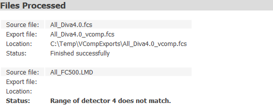 This section contains information about the files in the batch list and the result of the exporting process. If there were errors, they are reported in this section.
