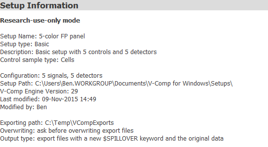 This section describes the V-Comp™ setup, where it is stored, and when it was last modified.