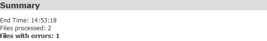This section summarizes the batch of files and indicates the total number of errors, if any.