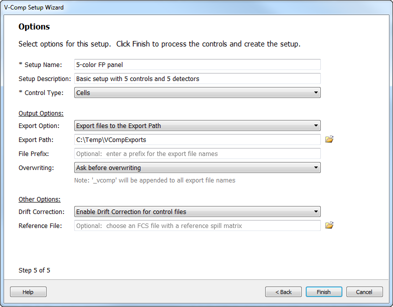 Select the sample type for the controls. This setting determines how V-Comp analyzes the controls to create the spillover matrix.