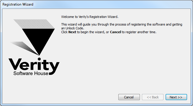 If you do not have access to the Internet, you can send the registration information below to Verity Software House by fax, mail, or telephone. Our technical support staff can register the software for you with the information you provide, and supply you with the Unlock Code to enter into the Registration Wizard.