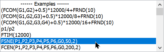 5. Select FSNE(P1,P2,P3,P4,P5,P6,G0,50,2) from the list of example equations. This will get us started.