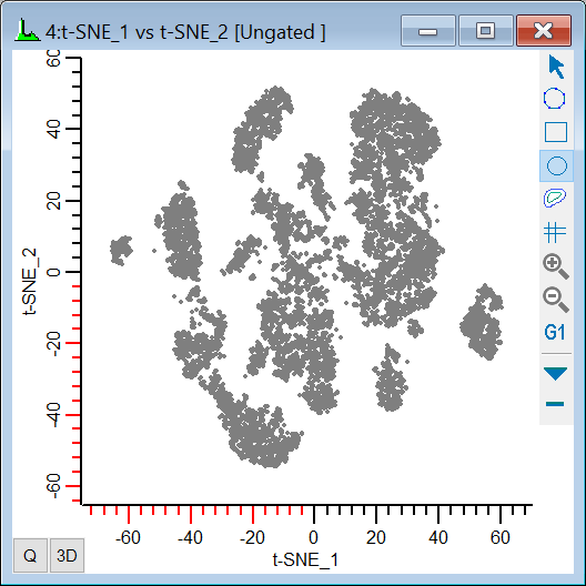 In 2008, Laurens van der Maaten and G.E. Hinton proposed a method for visualizing high-dimensional data called t-SNE . The name means "t-Distributed Stochastic Neighbor Embedding", and the method does a great job of reducing dimensionality to 2 or 3 dimensions. At the same time, the commonality of similar data points is preserved, making it a great tool for cytometry data. You can read more about this method on van der Maaten's web site: lvdmaaten.github.io/tsne.