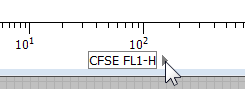 12. Move the mouse over the CFSE label on the X-axis and click the small triangle that appears. Select Log from the list of transformations. Repeat this for the CD69 Y-axis.
