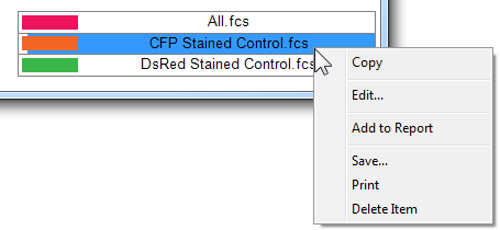 If an item is selected in the legend and that item is right-clicked, an additional entry appears in the menu allowing the selected item to be deleted.