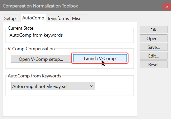 On the AutoComp tab of the Compensation Toolbox, we click the Open V-Comp setup button.